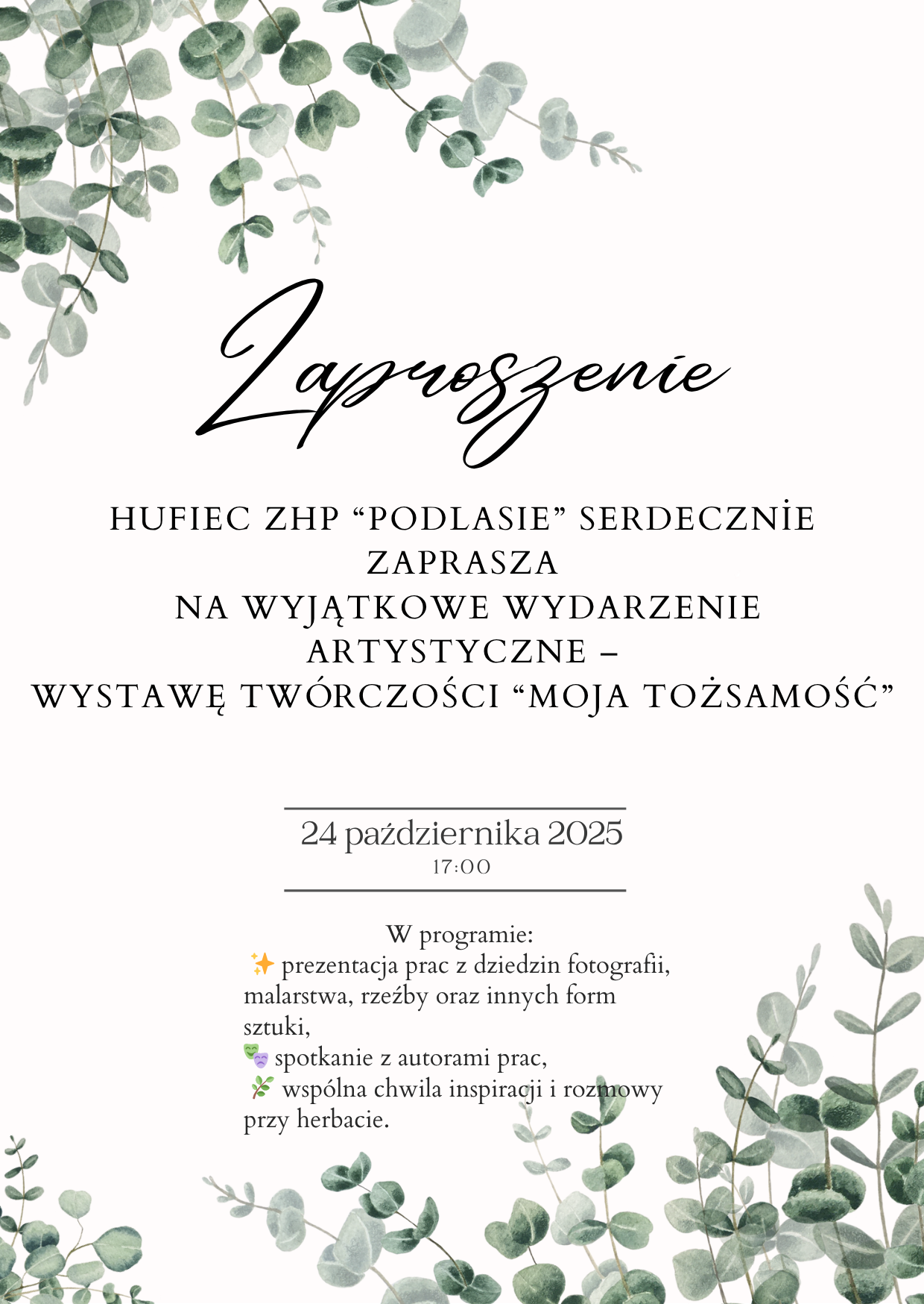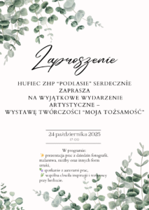 Hufiec ZHP „Podlasie” im. Henryka Sienkiewicza w Siedlcach już 24 października 2025 r. o godzinie 17:00 zaprasza do siedleckiego Domu Harcerza (ul. Zaremby 3) na wyjątkowe wydarzenie – wystawę artystyczną, która połączy różne dziedziny kultury i sztuki oraz wyjątkowe pasje naszych harcerzy! ![]()